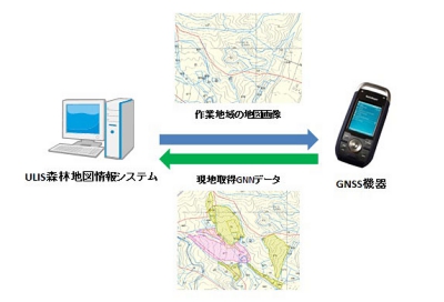GNSS端末 → ULIS森林地図情報システム