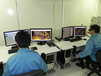 空中写真と同時調整(空中三角測量)等の成果を使用して、デジタルステレオ図化機を用いて地形・地物等の座標を取得し、数値図化データを作成します。