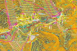 これら衛星より取得した画像、空中三角測量成果を用いてデジタルステレオ図化機にて等高線・地物のデータを取得・作成します。