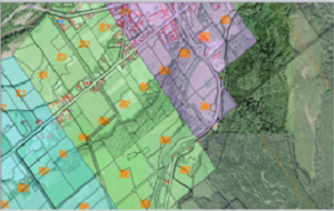 現地にて取得したGNSS座標データを元にシステム上に展開。これを元に各種造林範囲情報などを作成します。