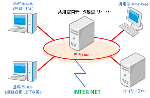総務省が定める「統合型GISに関する指針及び仕様」に基づく共用空間データ16項目の整備、及び、国土地理院が提唱するJPGIS(地理情報標準プロファイル)に基づき、統合型GISに必要なデータ構成とサービスを提供します。